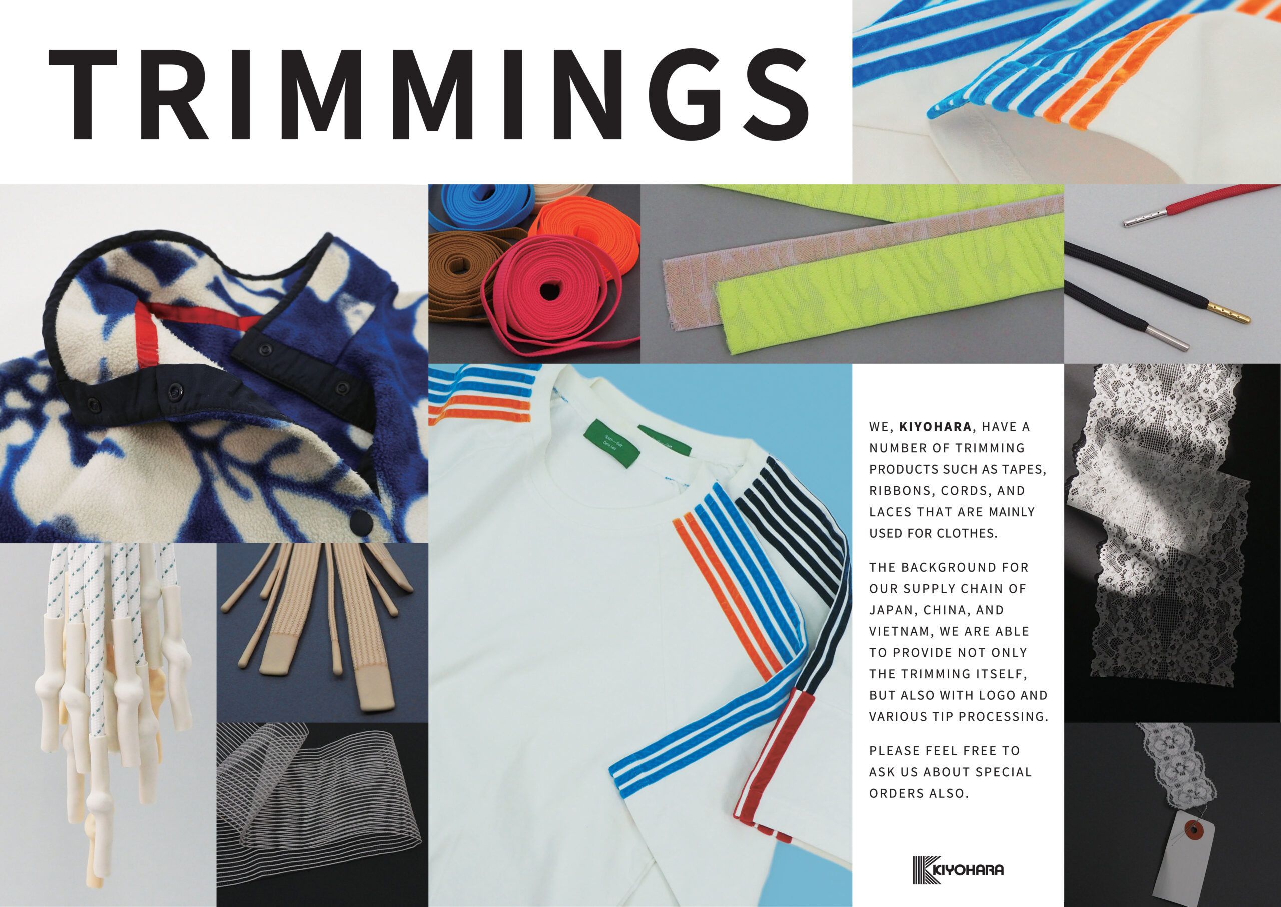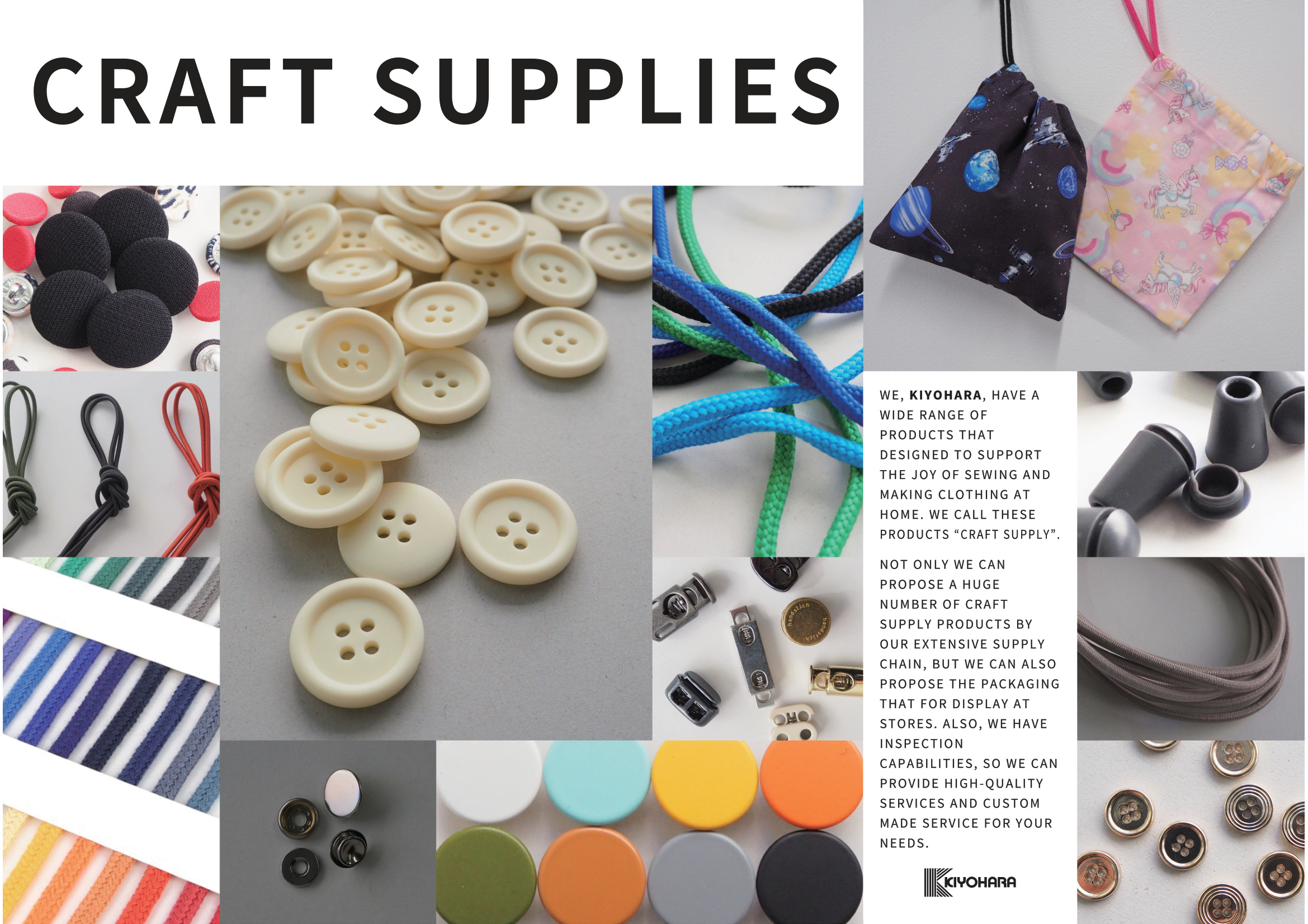 今回の展示では、ベトナム製の服飾・縫製資材、包装資材およびクラフトパッケージ商品をご提案いたします。
